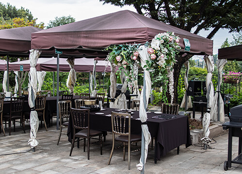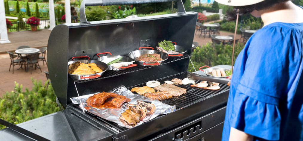정원을 한눈에 내려다보면서 즐길 수 있는 바비큐 요리입니다.