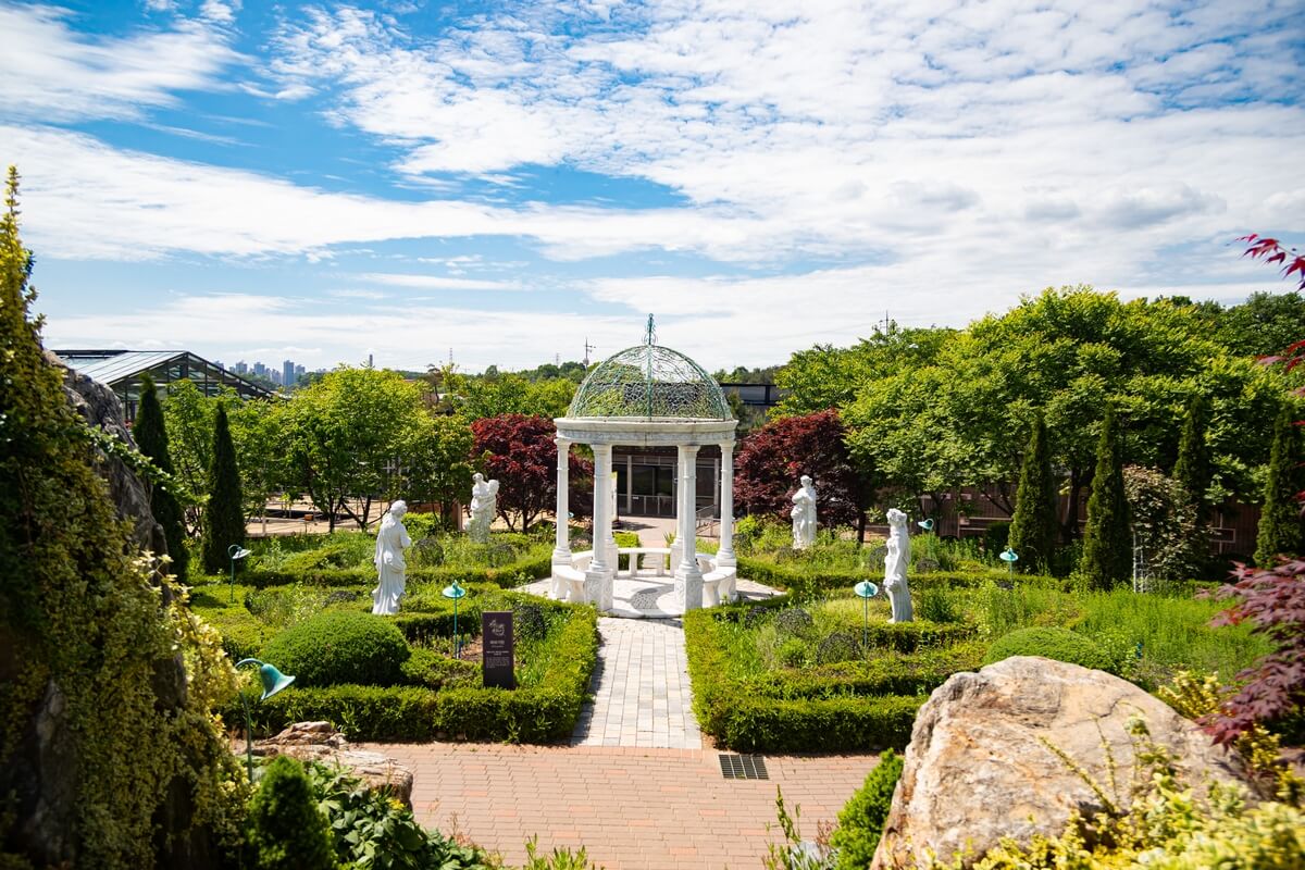 한여름 무더위에도 시원하게 정원을 관람할 수 있는 쉼터를 제공하며,