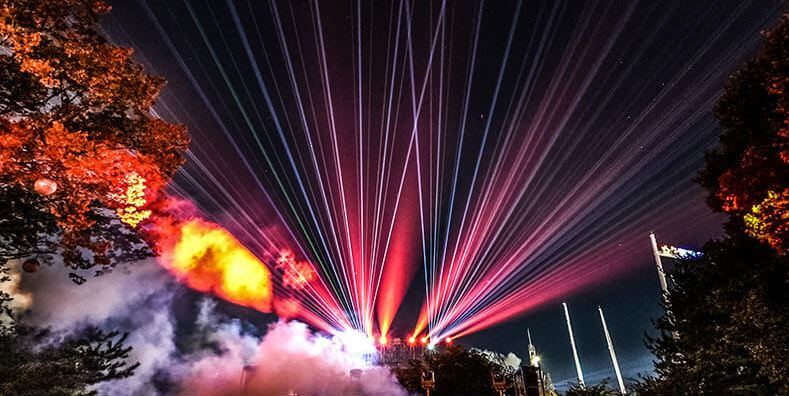 신나는 음악과 함께 여러 가지 컬러의 레이저가 발사되는 빛의 축제를 즐겨보세요 - 스노우 뮤직 글로브