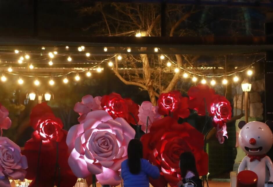 화려한 조명과 꽃 등 시간마다 색이 변하는 LED빛이 있습니다.
