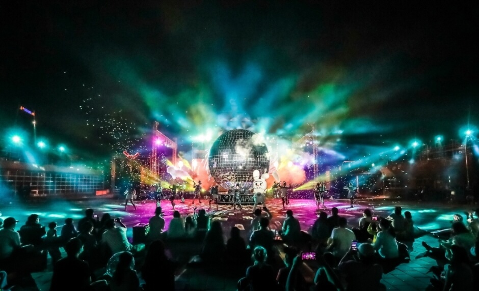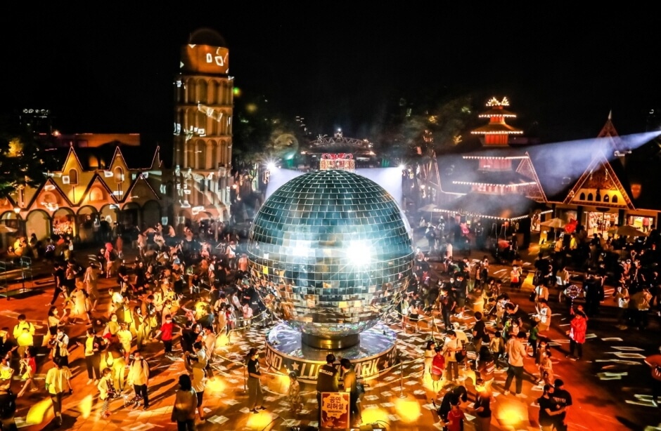 서울랜드의 랜드마크인 지구별에서의 무대 다 같이 춤추며 댄스타임 - 야간 빛 포토존