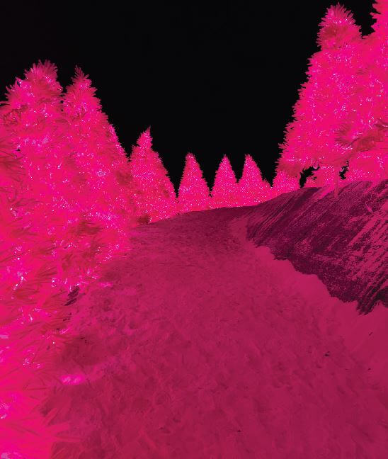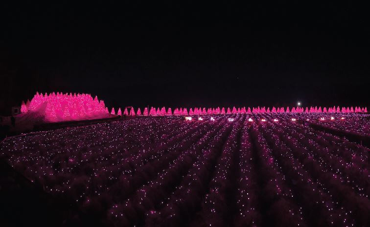 지금은 반딧불이를 떠오르게 하는 핑크 가득한 조명들이 펼쳐지고,