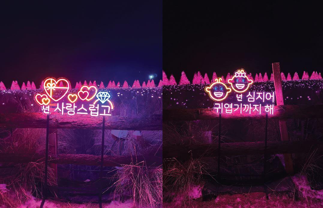예쁜 네온사인으로 이루어진 포토존에서 나만의 인생샷을 건져보세요