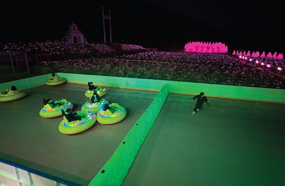 허브아일랜드만의 액티비티 시설로, 스케이트장, 범퍼카, 핑크썰매를 즐겨보실 수 있습니다.